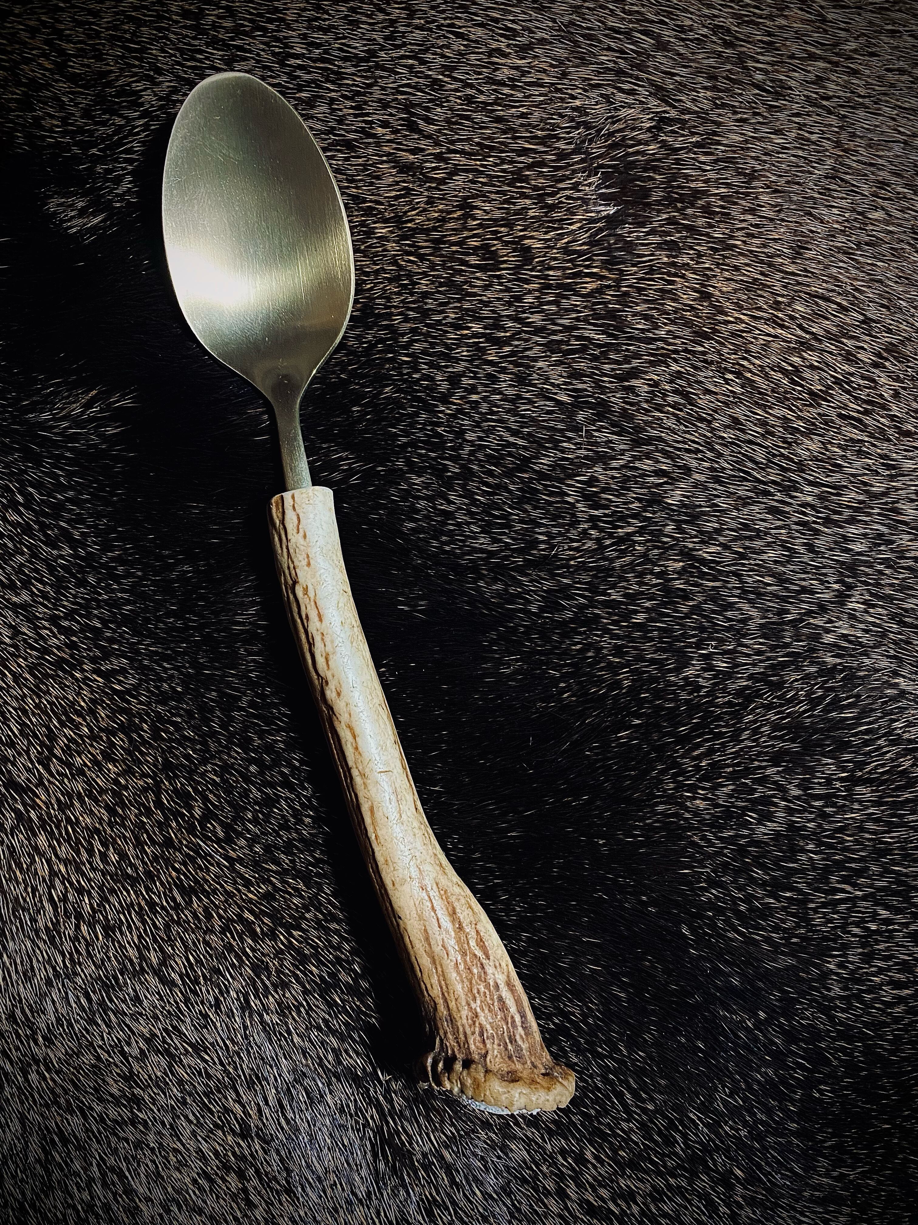 狩猟の伝統とともに受け継がれてきた鹿角を利用し、職人の手によってひとつひとつ丁寧に仕上げられています。そのため、彫刻やペイントなどの装飾が施されていないシンプルなデザインは、どんな料理とも調和し、自然素材の魅力を引き立てます。